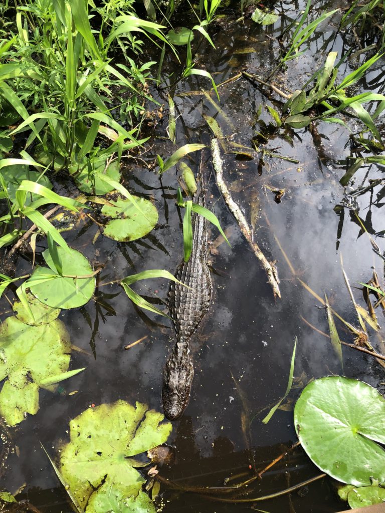 Als Abschluss fahren wir mit einem E-Mobil durch den Wald zu einer kurzen Wanderung, die am Bootsanleger endet. Hier müssen wir uns entscheiden: wet tour oder dry tour. Wet tour!!