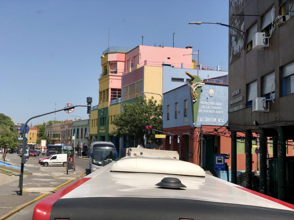 Direkt um die Ecke ist die Plaza Dorego, auf der neben einem mäßigen Essen Tangogesang und -tanz angeboten wird – sehr anmutig! Da wir nur einen vollen Tag in der Stadt eingeplant haben, buchen wir den Hop-on-hop-off-Touribus, der uns zunächst nach La Boca mit seinen bunten Häusern und dem wohl emotionalsten Stadion der Welt, La Bombonera, bringt. Hier ist – aus Braunschweiger Sicht erfreulicherweise – alles in blau und gelb gehalten, den Farben der Boca Juniors! Das Stadion steht mitten im Viertel – gelebte Fannähe.