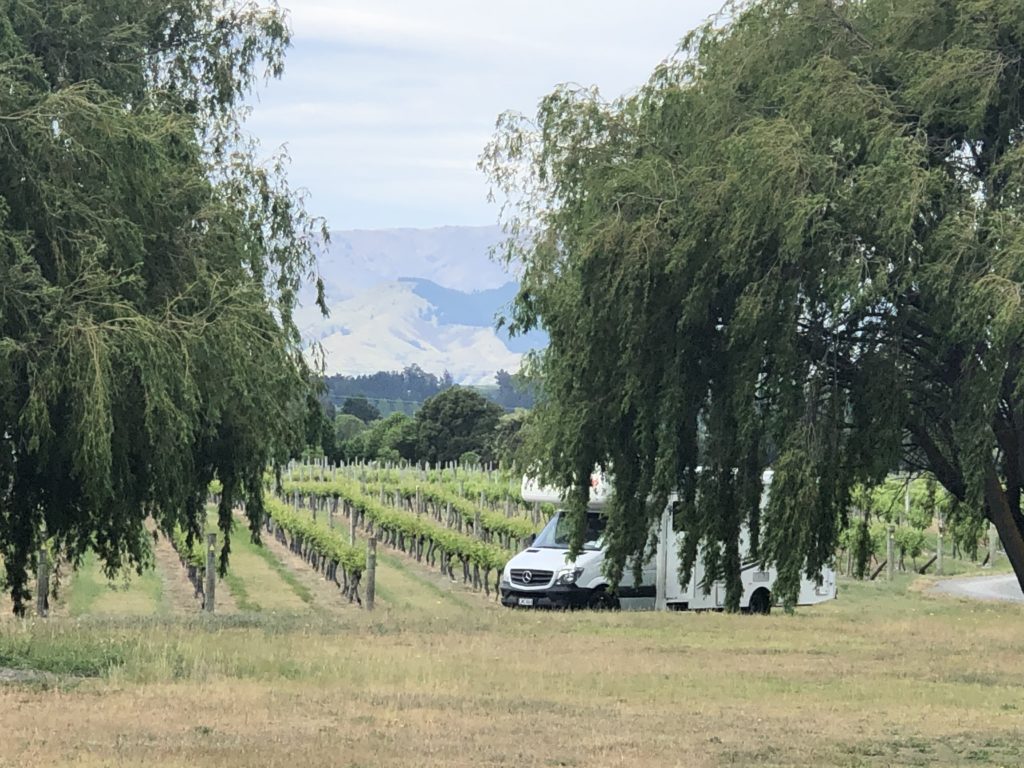 Bei unserer ersten Unterkunft verbinden wir Übernachtung und Weinreisestopp und stehen auf dem Anwesen von Bladen Wines. Tasting und eine Flasche Wein sind in der Übernachtungsrate inklusive. Der Sohn des Weinguts schenkt selbst aus und ist etwas unruhig, da er am Abend auf einer Preisverleihung zum Personality of he Year (oder so) nominiert ist – und tatsächlich auch gewonnen hat, wie wir am nächsten Tag erfahren.
