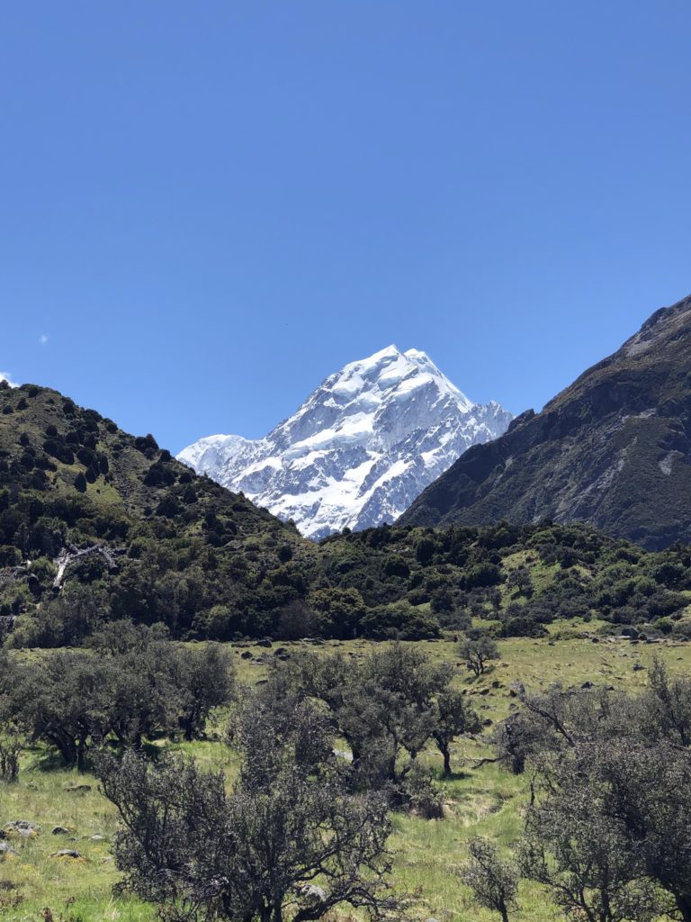 Durch einen Tipp von Iain (Doktorand bei VW und Kiwi) steuern wir für die nächsten Tage Lake Pukaki im Innenland an und werden mit fantastischem Wetter und Ausblick auf den höchsten Berg Neuseelands, dem Aoraki / Mount Cook belohnt.