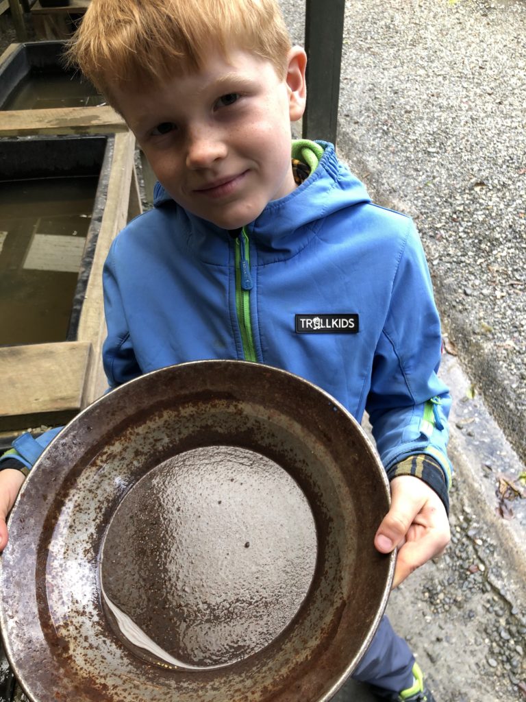 In der Nähe gibt es die teilweise original erhaltene Goldrausch-Siedlung „Shanty Town“, wo erfreulicherweise sehr wenig los ist und wir in Ruhe in das Leben des 19. Jahrhundert eintauchen können. Es gibt sogar die Möglichkeit selbst Gold zu schürfen uns so werden unsere Lüdden zu wahren Goldkindern.