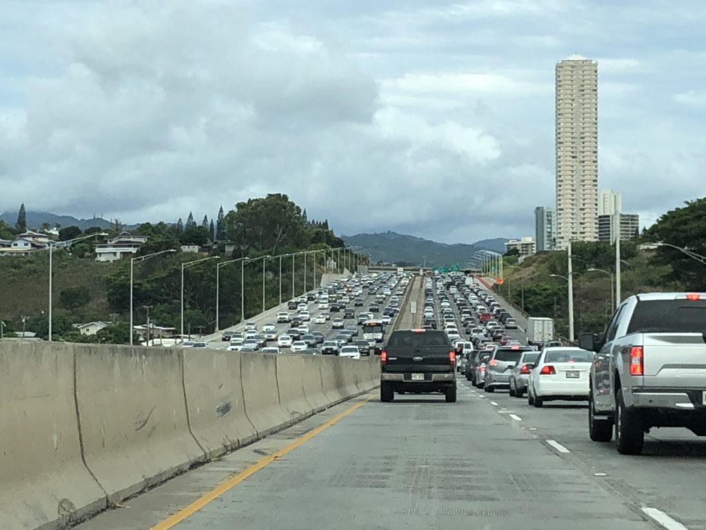 Schon beim Anflug auf Honolulu merken wir, dass die Insel ein völlig anderes Bild als die bisherigen bietet. Unter uns sehen wir km-weit Stadt und Hochhäuser. Unsere Unterkunft, das Hyatt Place Waikiki, erweist sich als echte Bettenburg inmitten einer Hochhauswelt a la El Arenal auf Mallorca, sehr wuselig (very busy and crowded eben).