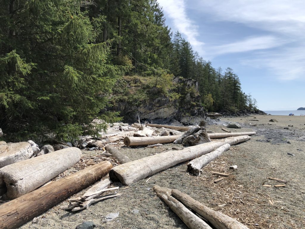 Los ging es auf Quadra Island, einer kanadischen Insel zwischen Vancouver Island und dem Festland von Britisch Columbia. In der Open Bay, die während Ebbe komplett leer läuft, haben wir 5 den Spülsaum einer Seite der Buch abgesucht. Hier das Ergebnis…