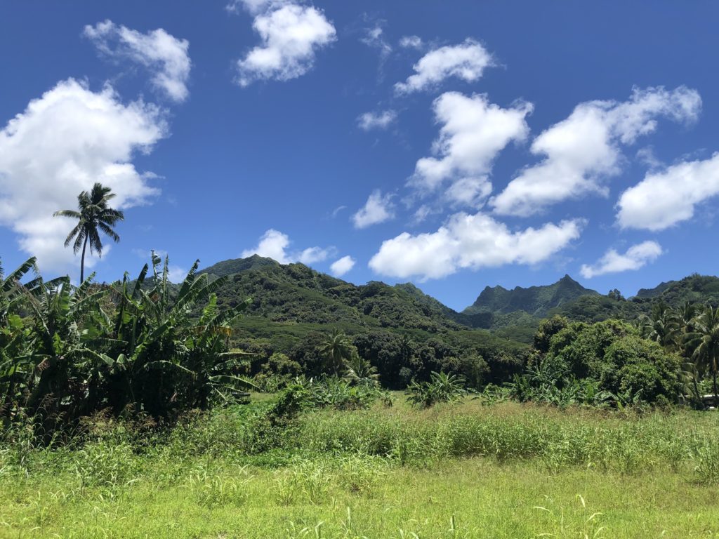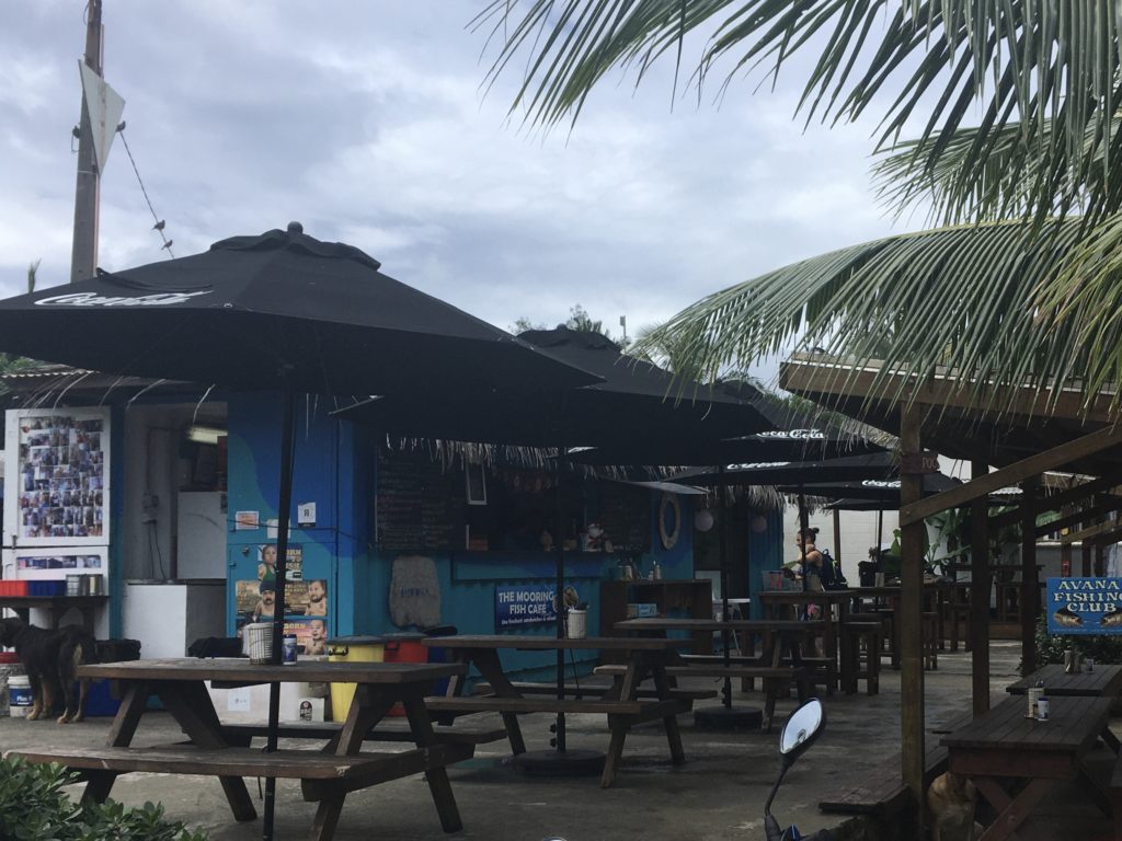 Am 2. Und 3. Tag umrunden wir in unserem sehr in die Jahre gekommenen Mietwagen ein, zweimal die Insel -sind ja nur 32 km. Zum Mittag gibt es außergewöhnlich guten und natürlich frischen Fisch im „Mooring Fish Café“ – einer lokalen Institution, die Ika Mata, gebeizten Thunfisch in Kokosnusscreme serviert. Eine weitere positive Auffälligkeit: auf Rarotonga kann man problemlos die Strände in den Resorts nutzen ohne Gast zu sein. So haben wir bei langsam besser werdendem Wetter Zugang zu einem klasse Schnorchelspot (die Insel ist komplett von einem Riff umschlossen und in der Lagune tummeln sich unzählige Fische) und die Kinder genießen den Pool und Schoko-Drinks.