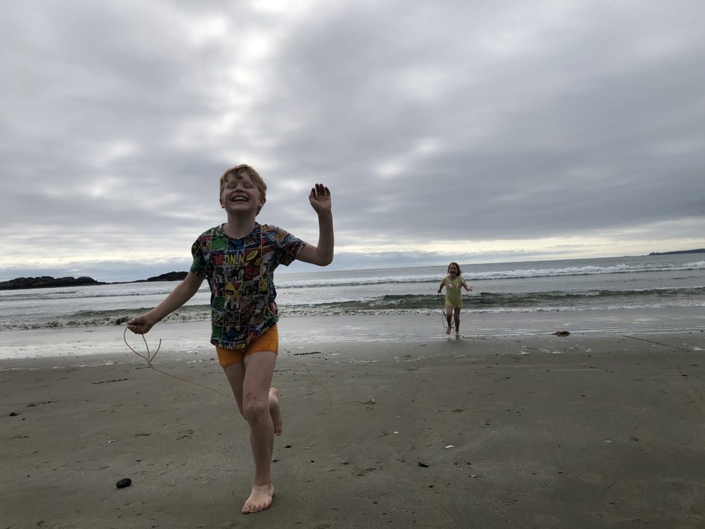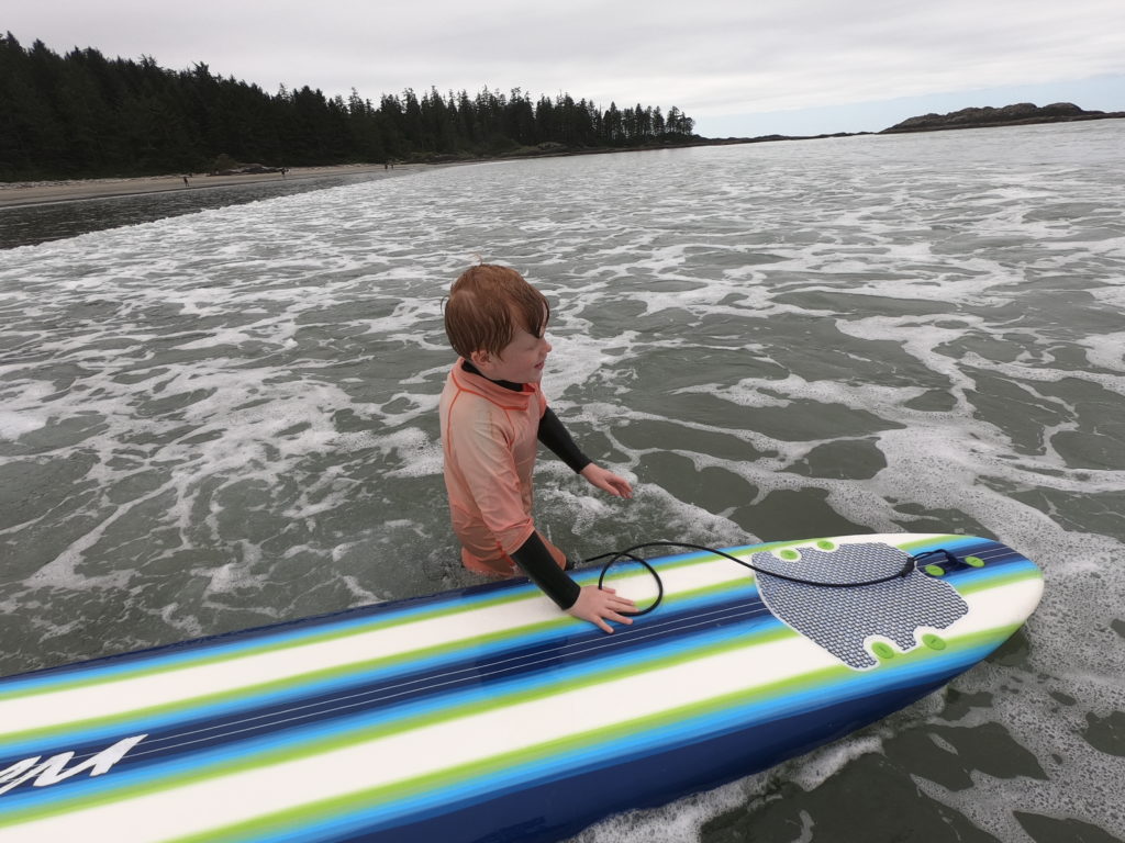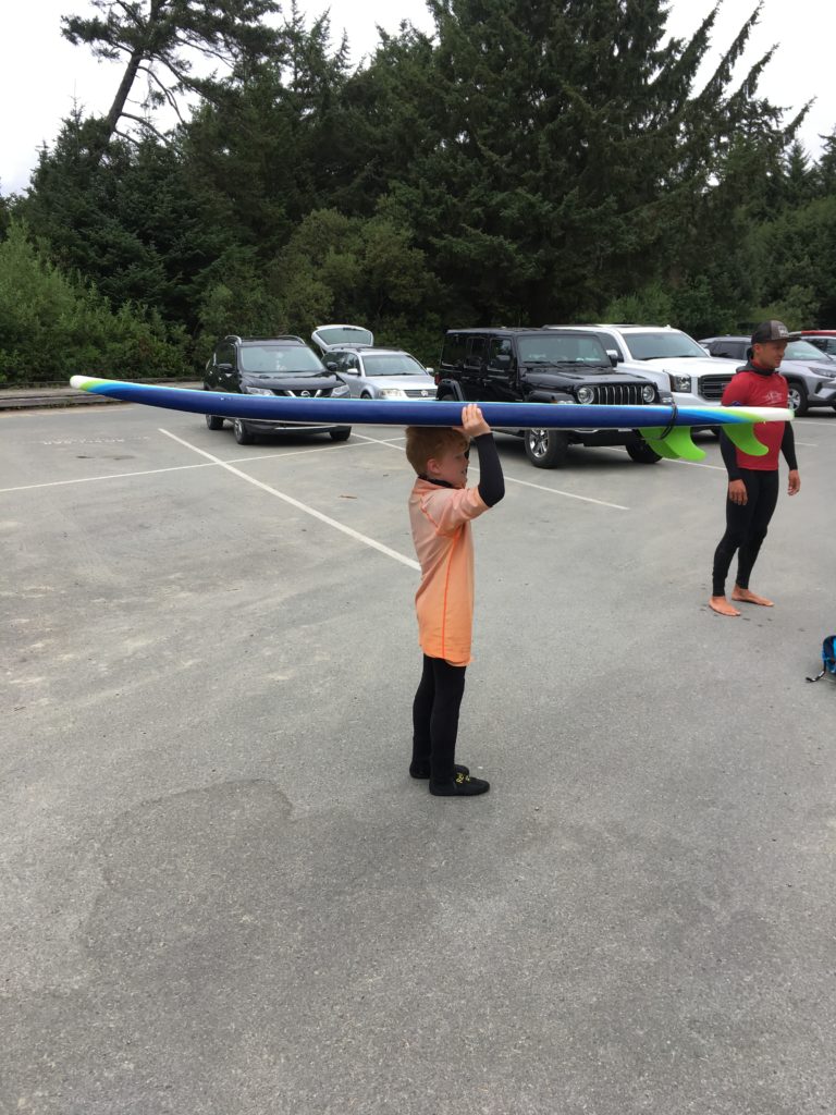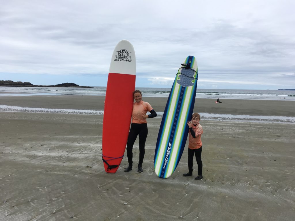 Die meiste Zeit haben wir am Long Beach verbracht (never change a winning beach!). Insgesamt waren wir hier 3 Nachmittage. Neben Joggen (Katinka und Frank) sowie Burgenbauen und einfach nur Quatsch machen (die Lüdden), haben wir hier alle das erste Mal auf dem Surfbrett gestanden. Katinka hat mit Espen sogar einen Kurs gemacht und uns anderen dann theoretisch erklärt und teilweise gezeigt – oder es zumindest versucht – wie es geht. Laut Familienbeschluss ergibt sich folgende Reihenfolge der Surfkünste (Stand Vancouver Island):