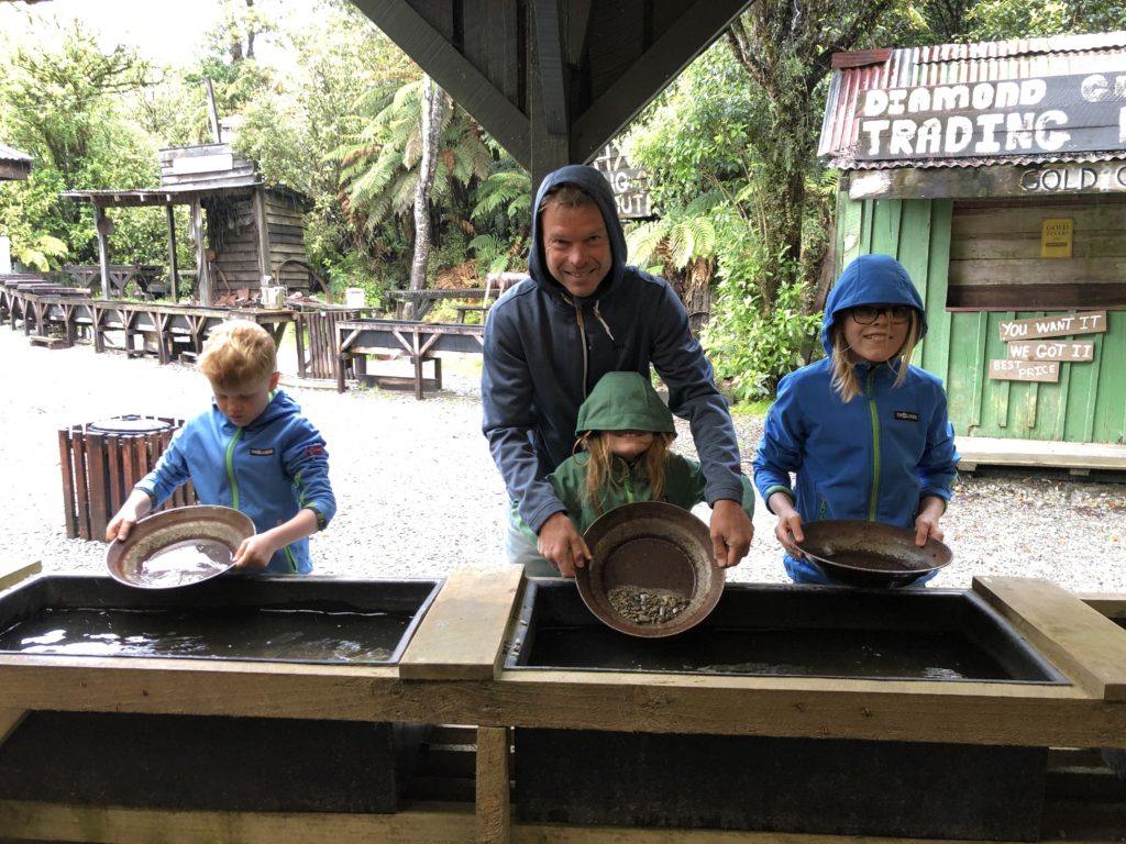 In der Nähe gibt es die teilweise original erhaltene Goldrausch-Siedlung „Shanty Town“, wo erfreulicherweise sehr wenig los ist und wir in Ruhe in das Leben des 19. Jahrhundert eintauchen können. Es gibt sogar die Möglichkeit selbst Gold zu schürfen uns so werden unsere Lüdden zu wahren Goldkindern.