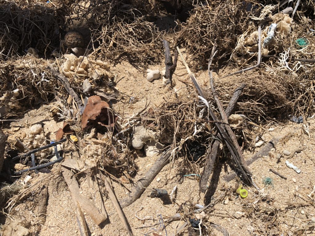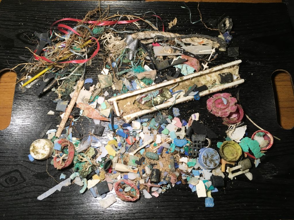 Da unser Beachcleaning auf Kauai – erfreulicherweise – nicht funktioniert hat, starten wir auf O’ahu nochmals einen Versuch. Während eines Badestopps an einem wirklich schönen Strand an der Nord-Ostseite der Insel fallen uns die vielen farbigen Brocken in dem eigentlich aus zerbröselten Korallen bestehenden weißen Sandstrand auf – Mikroplastik noch und nöcher. Neben den farbigen Stücken finden wir bei näherem Hinsehen auch sehr viele weiße bzw. durchsichtige Stückchen, die kaum vom Sand zu unterscheiden sind – ein sehr trauriger Anblick. Uns wird hier plasti(k)sch vor Augen geführt, dass die Aktion nur ein symbolischer Tropfen auf den heißen Steinen sein kann. Das war uns ja zwar schon vorher klar, allerdings zeigt einem die mühsame Arbeit, wie schwierig es ist, unseren ganzen Müll wieder einzufangen.