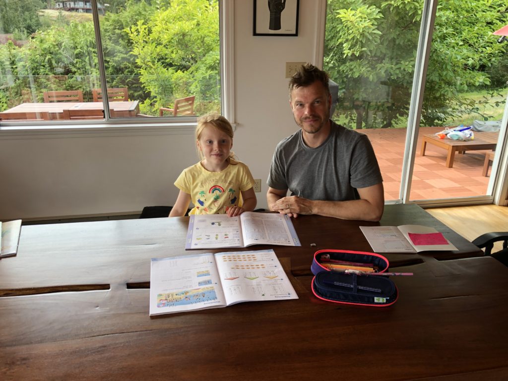 Neu für uns alle: „Schule“ geht los… Die Kinder machen (fast immer) gut mit und wir liegen aktuell voll im Plan.