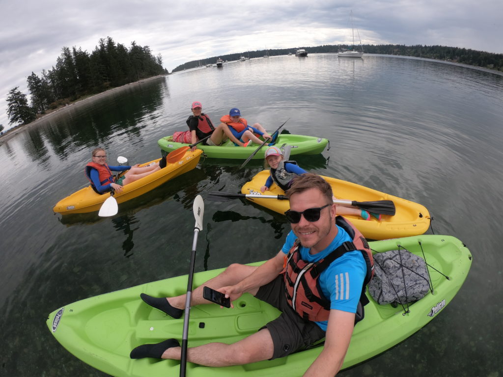 Der erste Geburtstag auf der Reise: Lykka wird 7! Zur Feier des Tages fahren wir gemeinsam Seekajak.