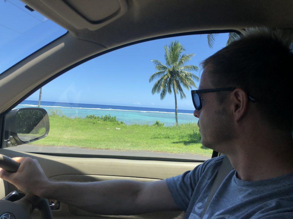Am 2. Und 3. Tag umrunden wir in unserem sehr in die Jahre gekommenen Mietwagen ein, zweimal die Insel -sind ja nur 32 km. Zum Mittag gibt es außergewöhnlich guten und natürlich frischen Fisch im „Mooring Fish Café“ – einer lokalen Institution, die Ika Mata, gebeizten Thunfisch in Kokosnusscreme serviert. Eine weitere positive Auffälligkeit: auf Rarotonga kann man problemlos die Strände in den Resorts nutzen ohne Gast zu sein. So haben wir bei langsam besser werdendem Wetter Zugang zu einem klasse Schnorchelspot (die Insel ist komplett von einem Riff umschlossen und in der Lagune tummeln sich unzählige Fische) und die Kinder genießen den Pool und Schoko-Drinks.