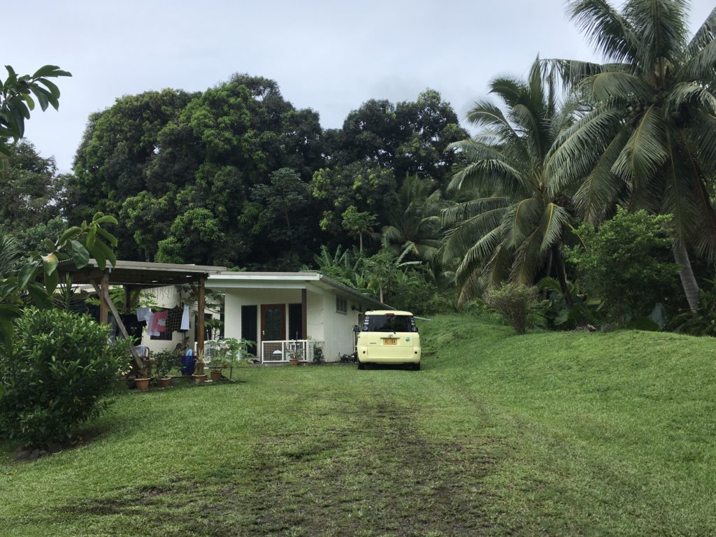 Mit einer Stunde Verspätung landen wir auf Rarotonga und merken, dass auch in abgelegenen Südseestaaten die Einreise etwas dauern kann. Unsere Gastgeberin Odette hat trotzdem auf uns gewartet und so stehen wir kurz danach vor Ihrem Mini-Toyota und fragen uns, wie 3 Erwachsene, 3 Kinder und unser respektables Gepäck da hineinpassen sollen – aber es klappt! Odette kommt gebürtig aus Gera, hat länger in Berlin gelebt und ist über Australien schließlich auf den Cook Inseln gelandet, wo sie mit Joe ein paar Ferienhäuser auf ihrem Grundstück vermietet. Das Ganze hat Bauernhof-Atmosphäre, gibt es doch unzählige Hühner (und Hähne, die uns morgens recht zeitig aufwecken, danach halfen Ohropax), zwei Ziegen, Katzen und sogar ein Schwein. Die Kinder finden´s super und wir genießen die Gastfreundschaft und das tolle Frühstück jeden Morgen mit frisch gepflückten Bananen und Papaya in Hülle und Fülle.