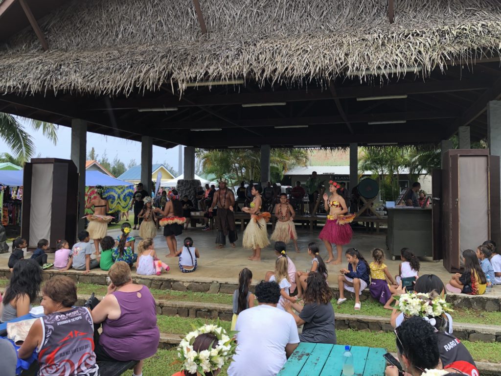 Rarotonga will uns nicht überfordern und stapelt bei Dauerregen zunächst tief… (aber was haben wir mitten in der Regenzeit auch erwartet und irgendwie muss das überbordende Grün ja bewässert werden.) Daher bleiben wir auch nicht auf dem samstäglichen Markt trocken, der aber mit einer ersten Darbietung der lokalen Trommel- und Tanzkünste sowie Köstlichkeiten entschädigt. Wir bewundern die Blumenkränze der locals, die die bunten Blumenoutfits (ziemlich oft in XXXL) wunderschön ergänzen. Touristen sehen dagegen wenig authentisch mit den Blüten im Haar aus.
