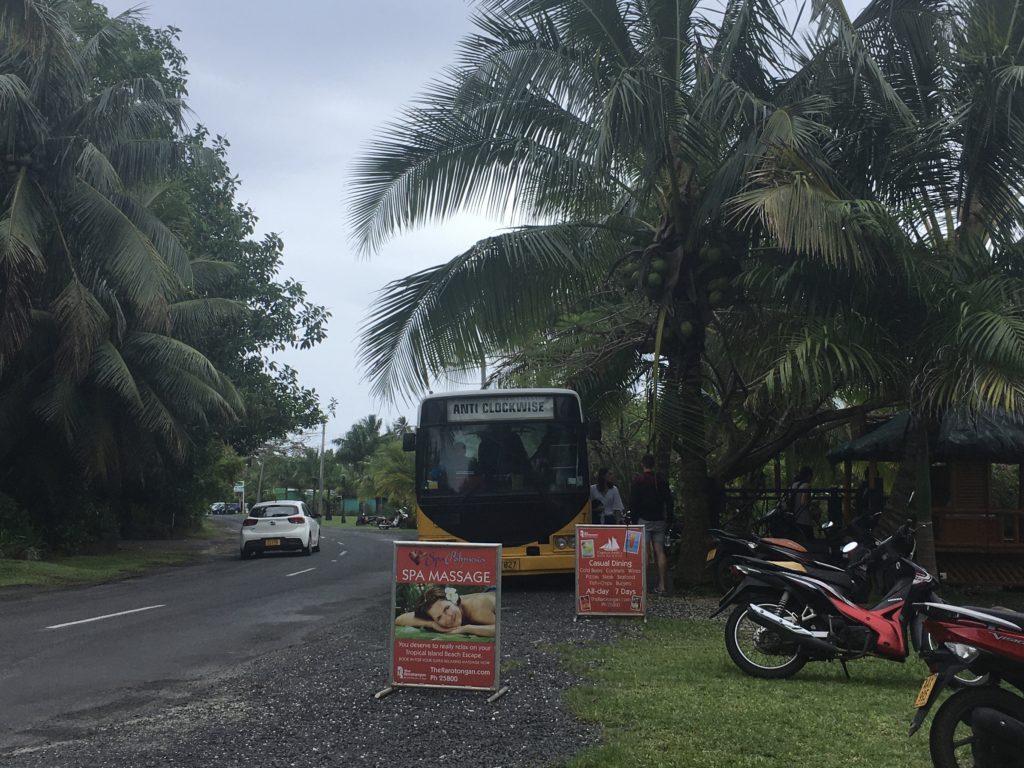 Eine sympathische Eigenheit von Raro: es gibt auf der Ringstraße zwei Buslinien: ein Bus fährt im und der andere entgegen dem Uhrzeigersinn.