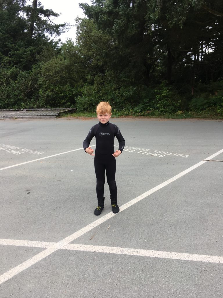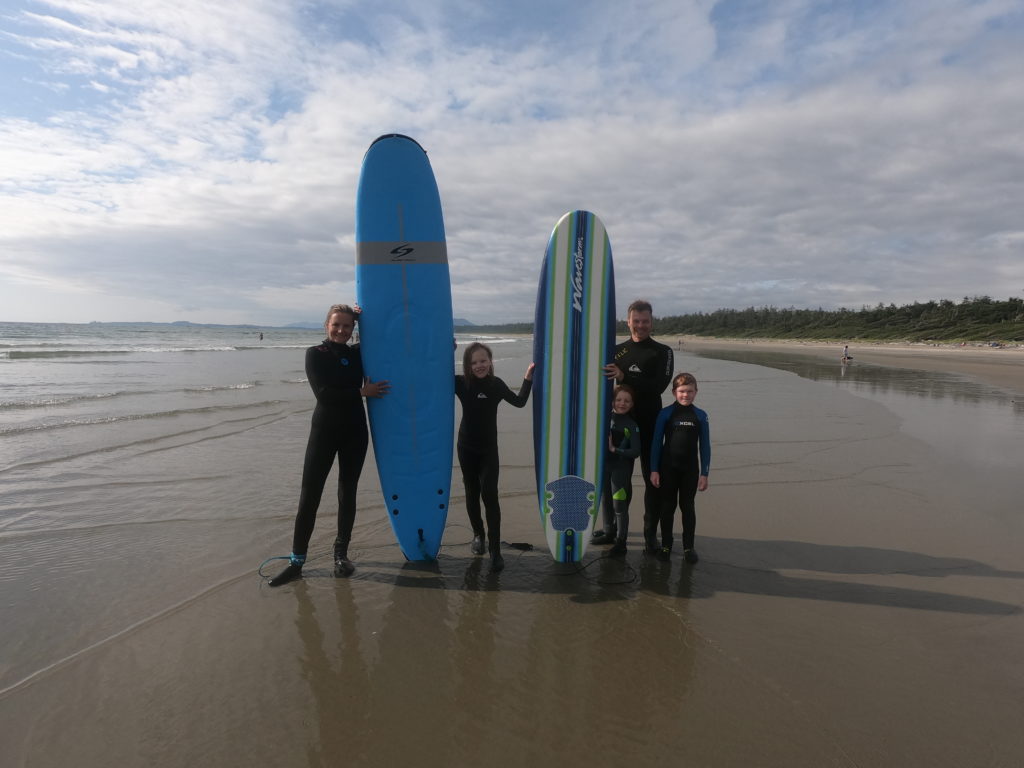 Die meiste Zeit haben wir am Long Beach verbracht (never change a winning beach!). Insgesamt waren wir hier 3 Nachmittage. Neben Joggen (Katinka und Frank) sowie Burgenbauen und einfach nur Quatsch machen (die Lüdden), haben wir hier alle das erste Mal auf dem Surfbrett gestanden. Katinka hat mit Espen sogar einen Kurs gemacht und uns anderen dann theoretisch erklärt und teilweise gezeigt – oder es zumindest versucht – wie es geht. Laut Familienbeschluss ergibt sich folgende Reihenfolge der Surfkünste (Stand Vancouver Island):