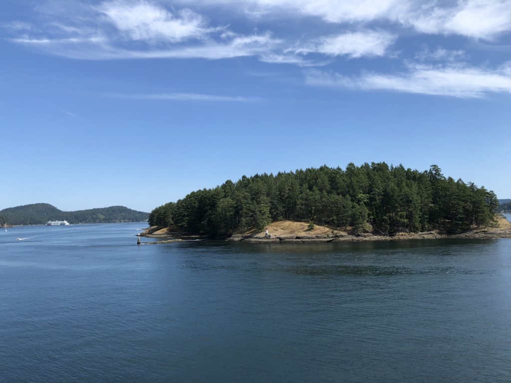 Die Überfahrt von Tsawassen nach Swartz Bay auf Vancouver Island ist dann einfach nur zum Genießen: strahlend blauer Himmel, vorbei an kleinen Inseln, am Horizont die Berge nahe Vancouver und auch der erste Buckelwal lässt sich in einiger Entfernung blicken – ob da noch mehr kommt?